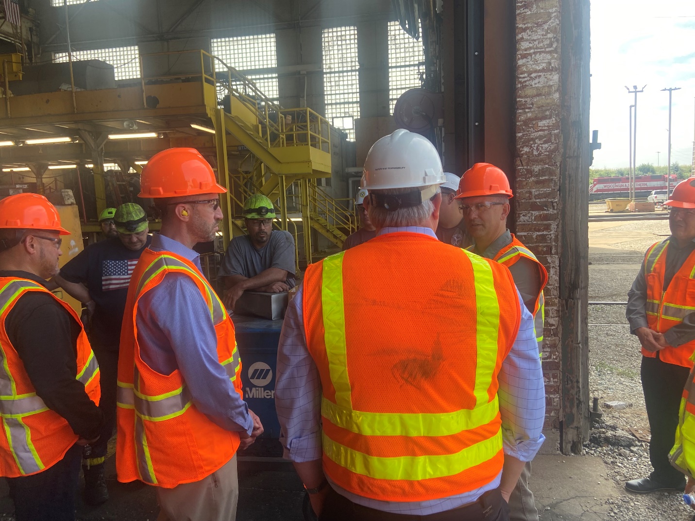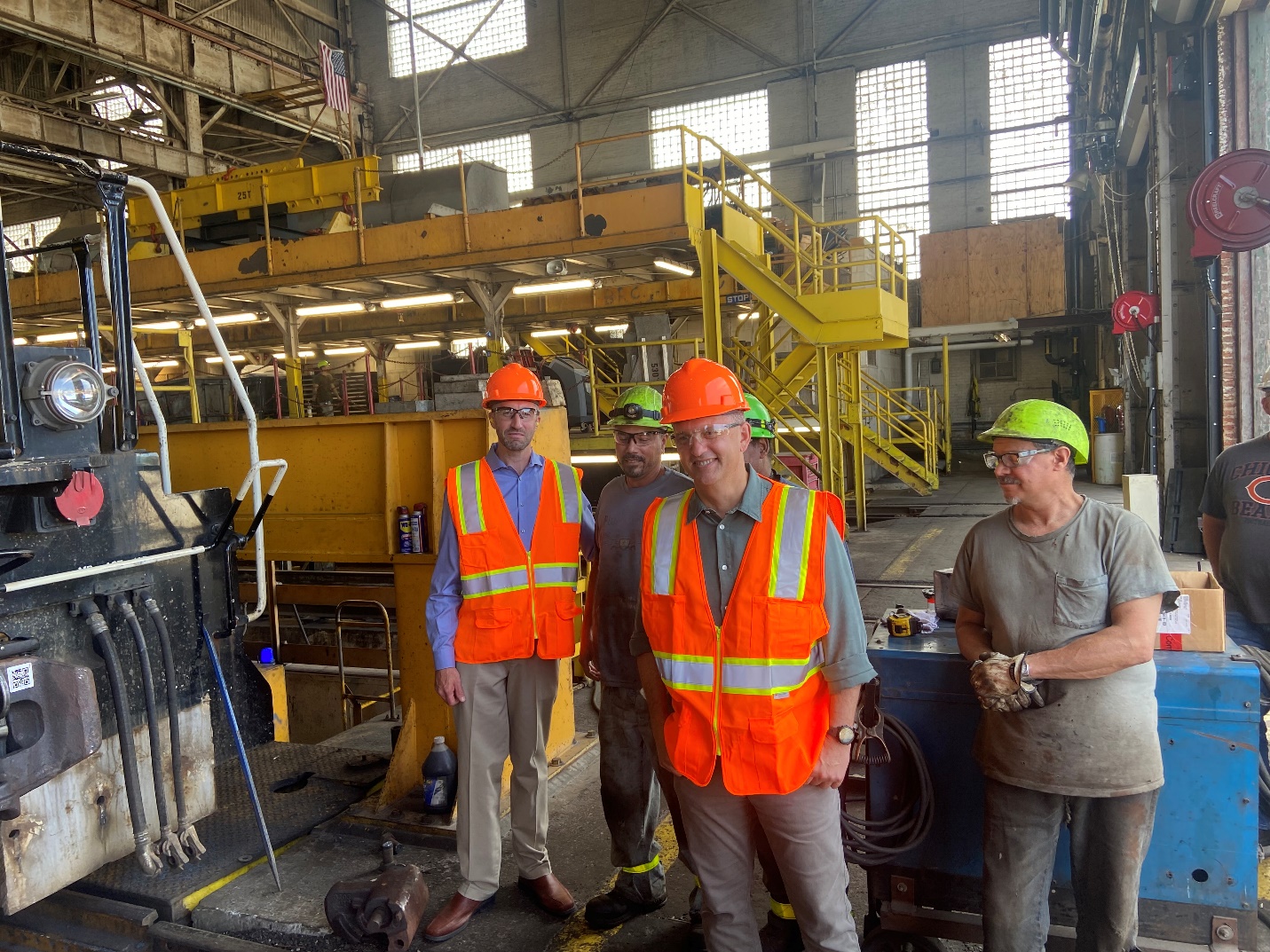 On August 11, 2023, Congressman Sean Casten, Illinois 6th District, visited the Belt Railroad Shop in Chicago IL. District 19 Local Lodge 478 President Mike Lemon had the opportunity to introduce the Congressman to some of our Machinists on duty in the shop that day. They discussed the Railway Safety Act, lack of manpower, sick days, and the importance of thorough inspections given the climate of what happened with the derailment in Ohio. Congressman Casten committed his full support on all these issues. The IAMAW appreciates Congressman Casten taking the time to visit our members and hear our concerns.